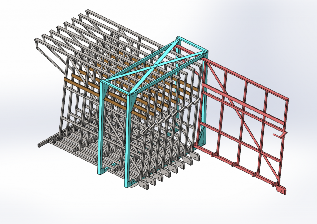 Склад предназначен для компактного хранения стекла в ящиках или без упаковки, а так же для складирования других листовых материалов с максимальными размерами 3.3х2.3 метра.