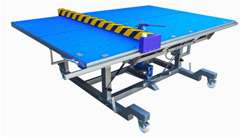 Стол для раскроя стекла с подъемной столешницей. Основным преимуществом является скорость обращения со стеклом. Может использоваться одним оператором. Не нуждается в настройке, готов к использованию сразу.